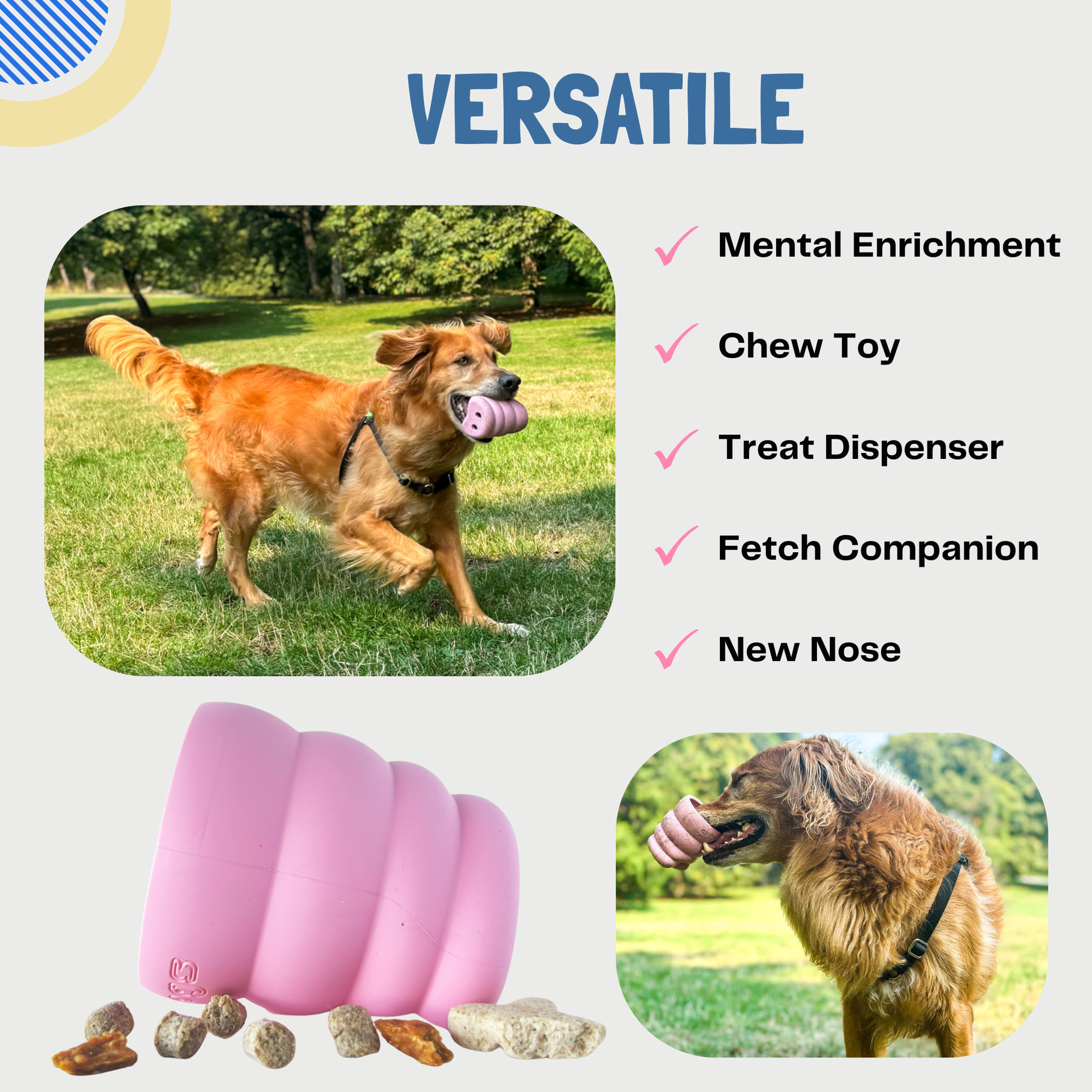 ✅ Multi-Purpose Fun: Use it as a treat puzzle, a chew toy, or even a fun fetch toy.